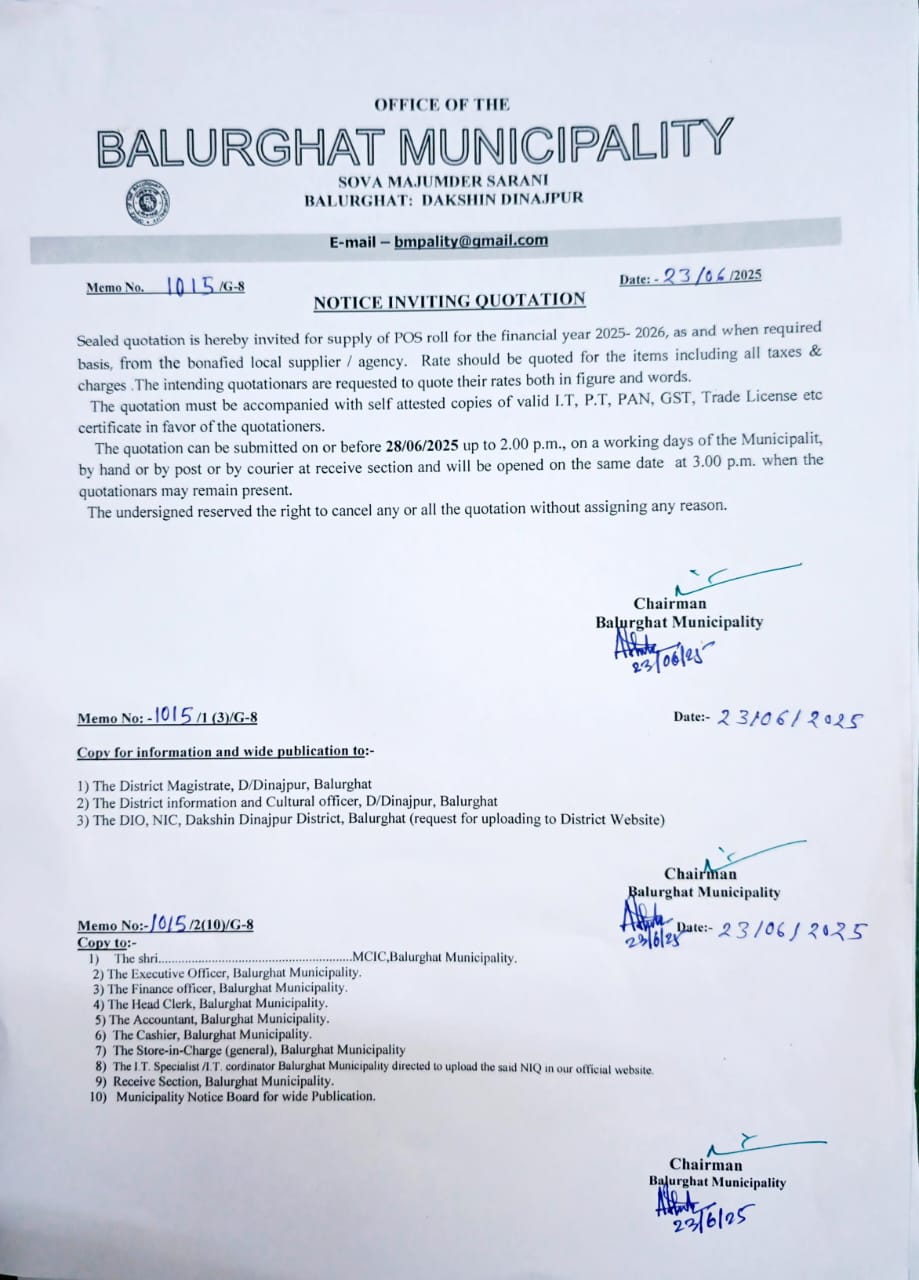 Supply of POS Roll under Balurghat Municipality